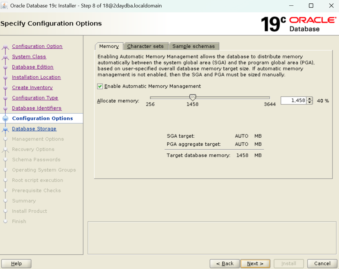 - Memory: AMM(Automatic Memory Management)으로 SGA와 PGA 모두 자동 관리