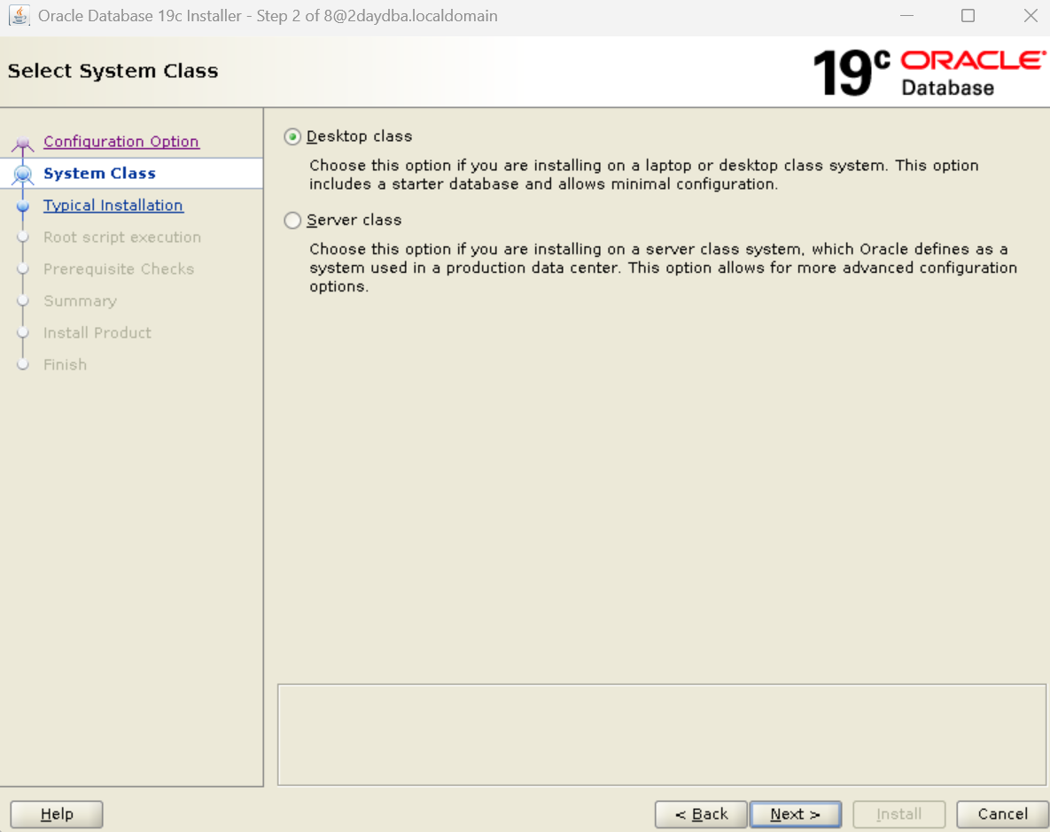 - Desktop class: 데스크톱이나 노트북에 적합한 클래스. 설치 과정 중 기본 설정만 가능. -> 9. Typical Installation으로 넘어감