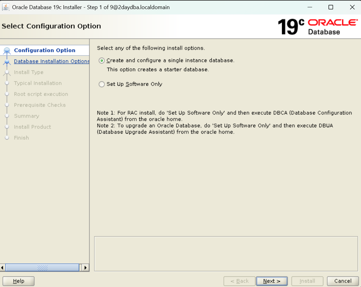 - Single instance database installation: 인스턴스 하나인 DB 설치