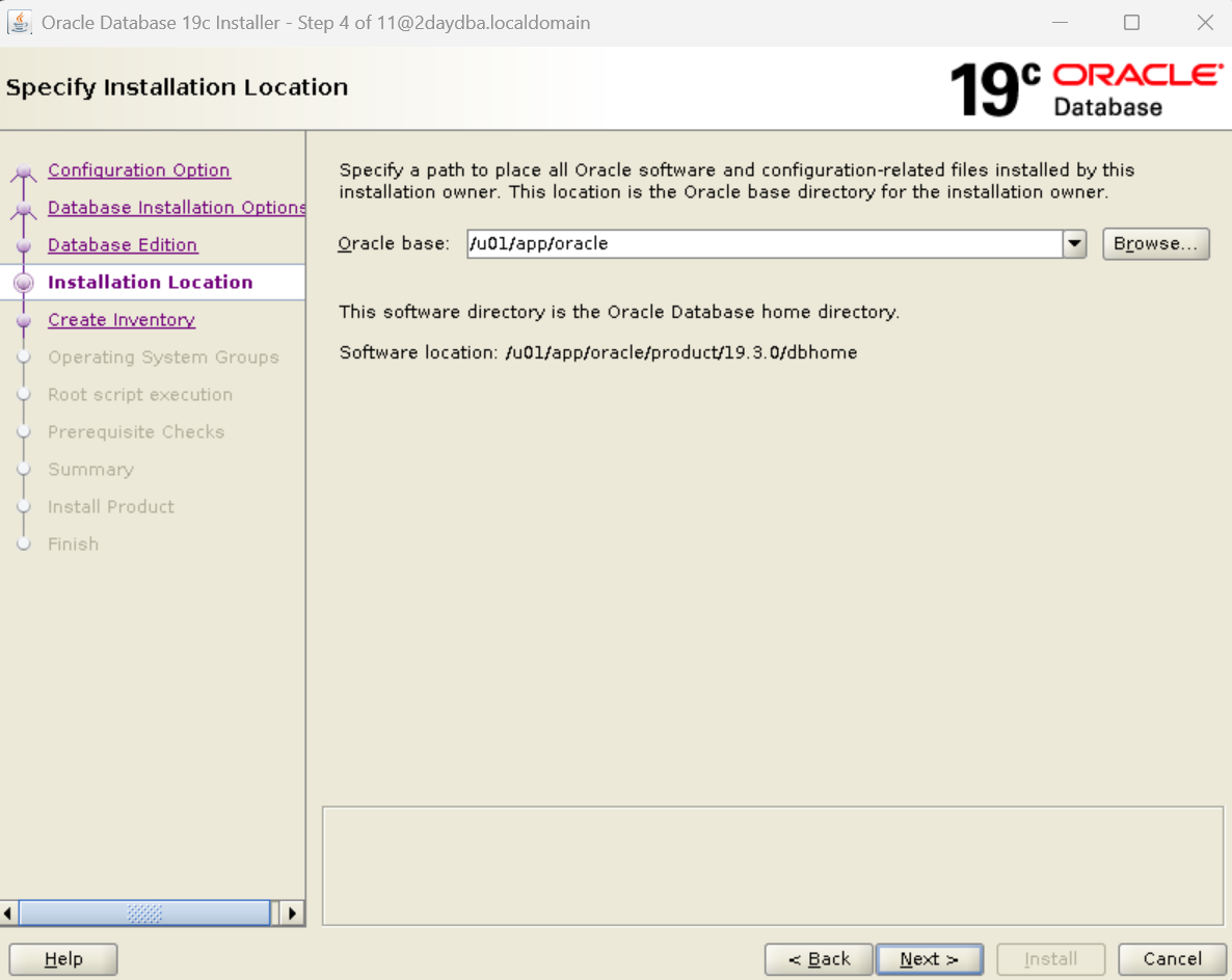 - Oracle base: 모든 오라클 제품이 공유하는 기본 디렉터리 (기본값: /u01/app/<username>)