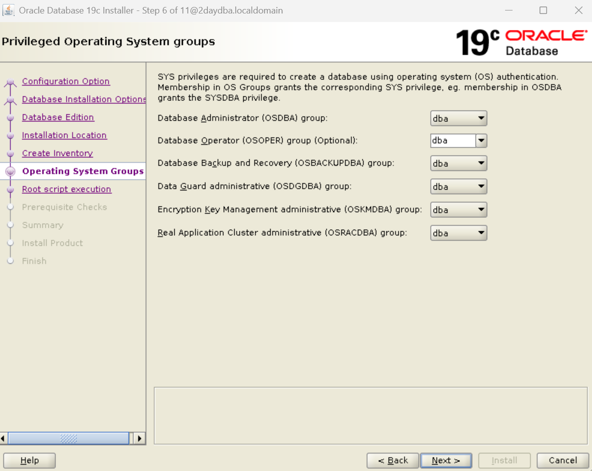 각 관리 기능별로 어떤 OS 그룹에 권한을 부여할지 설정하는 단계