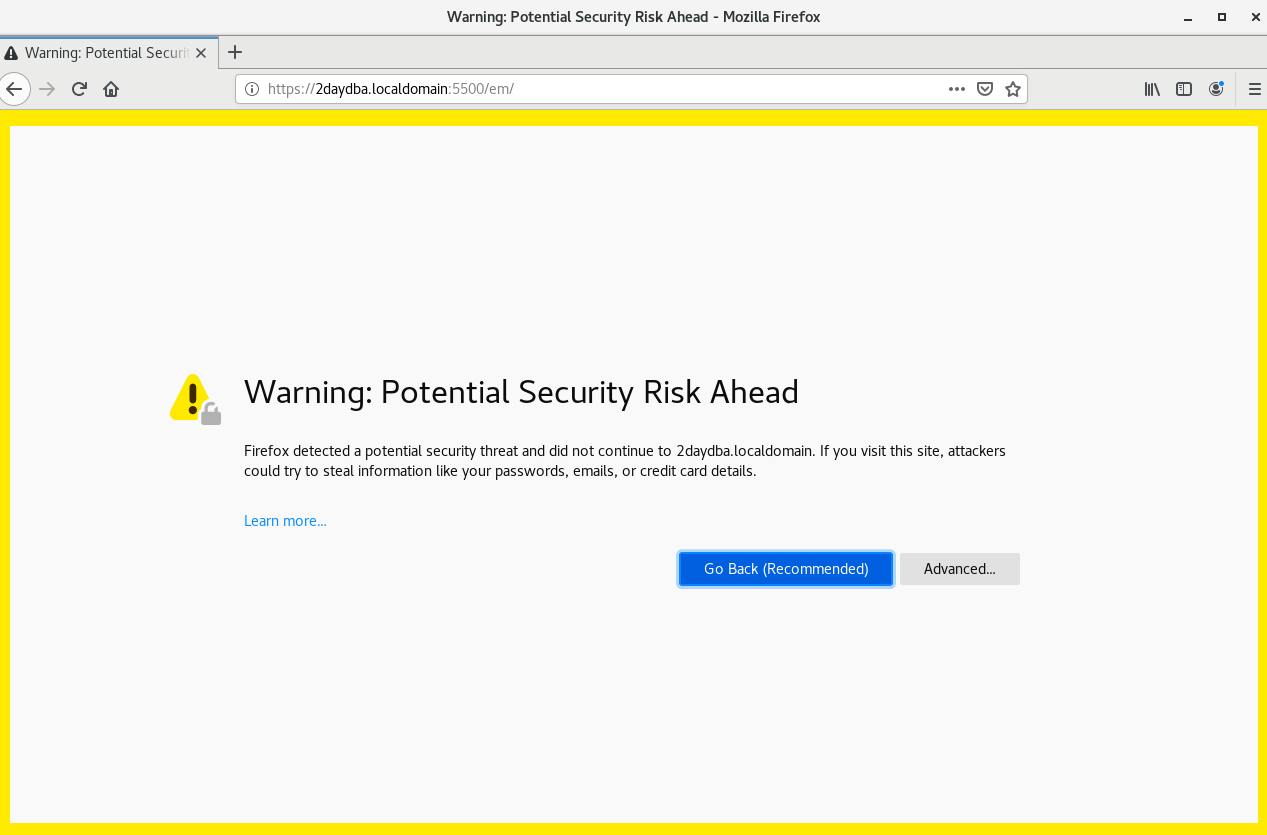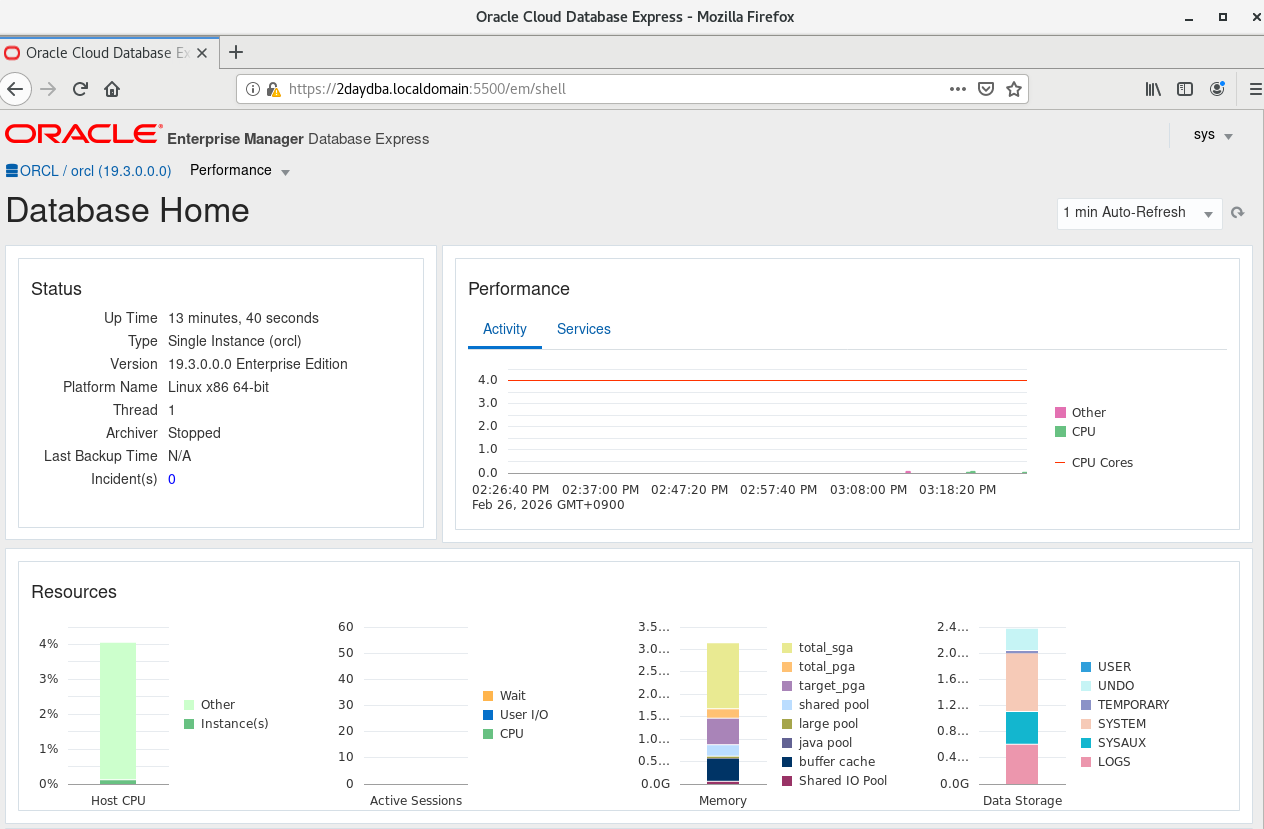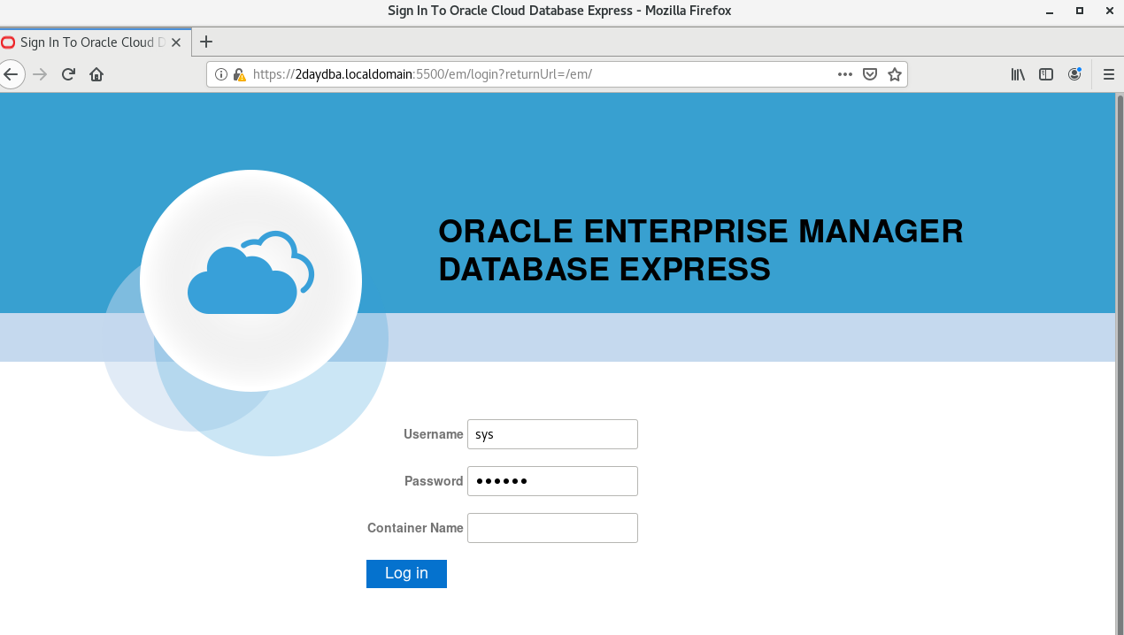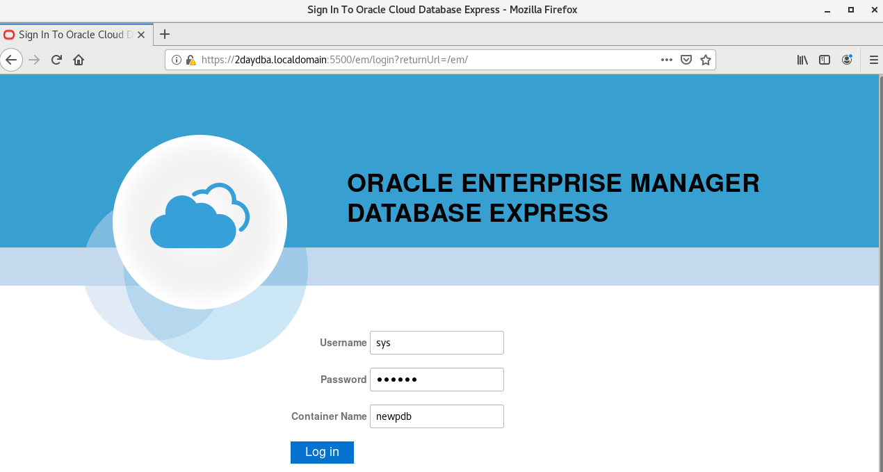- VMware 가상 머신에서: https://2daydba.localdomain:5500/em/
