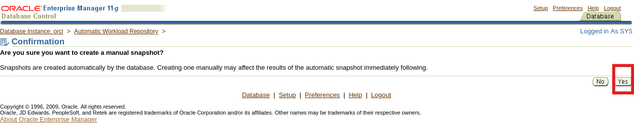화면이 하얗게 변하면 새로고침 누른 뒤, 다시 snapshots로 들어가 생성된 스냅샷 확인 ADDM 실행 및 결과 확인