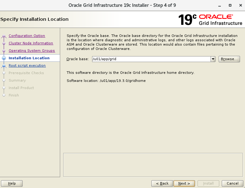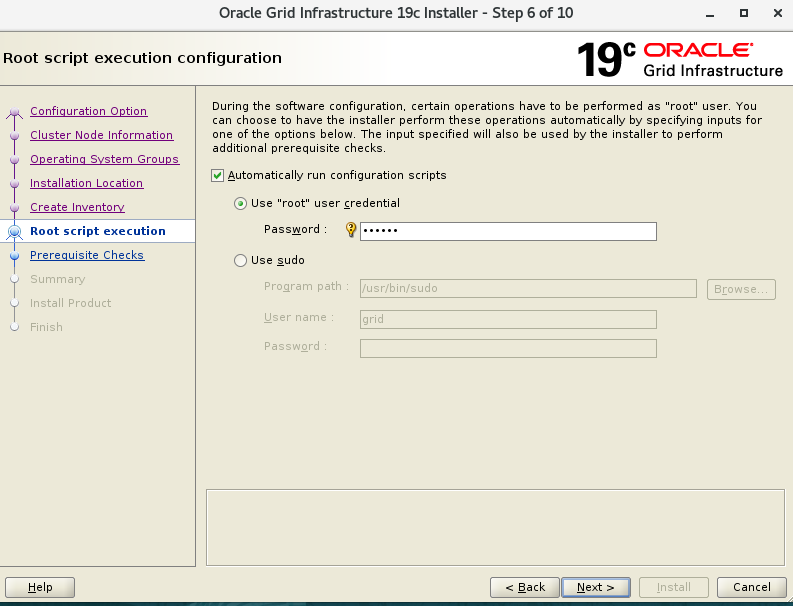 -- root 계정에서 설치 파일 복사 cp LINUX.X64_193000_grid_home.zip /u01/app/19.3.0/gridhome/ -- grid 계정으로 전환 후 압축 해제 su - grid cd /u01/app/19.3.0/gridhome unzip LINUX.X64_193000_grid_home.zip -- Grid 설치 마법사 실행 sh gridSetup.sh