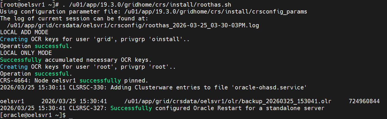 root계정에서 roothas.sh 스크립트 실행