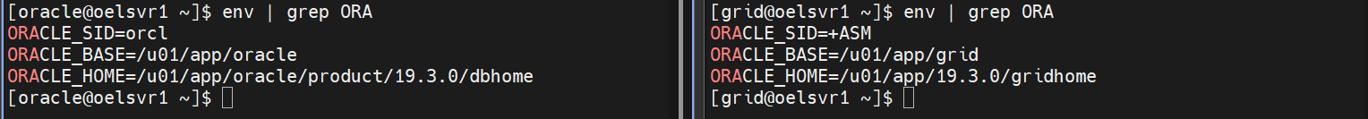 oracle 및 grid 계정에서 각각 환경변수 적용된 것 확인 가능
