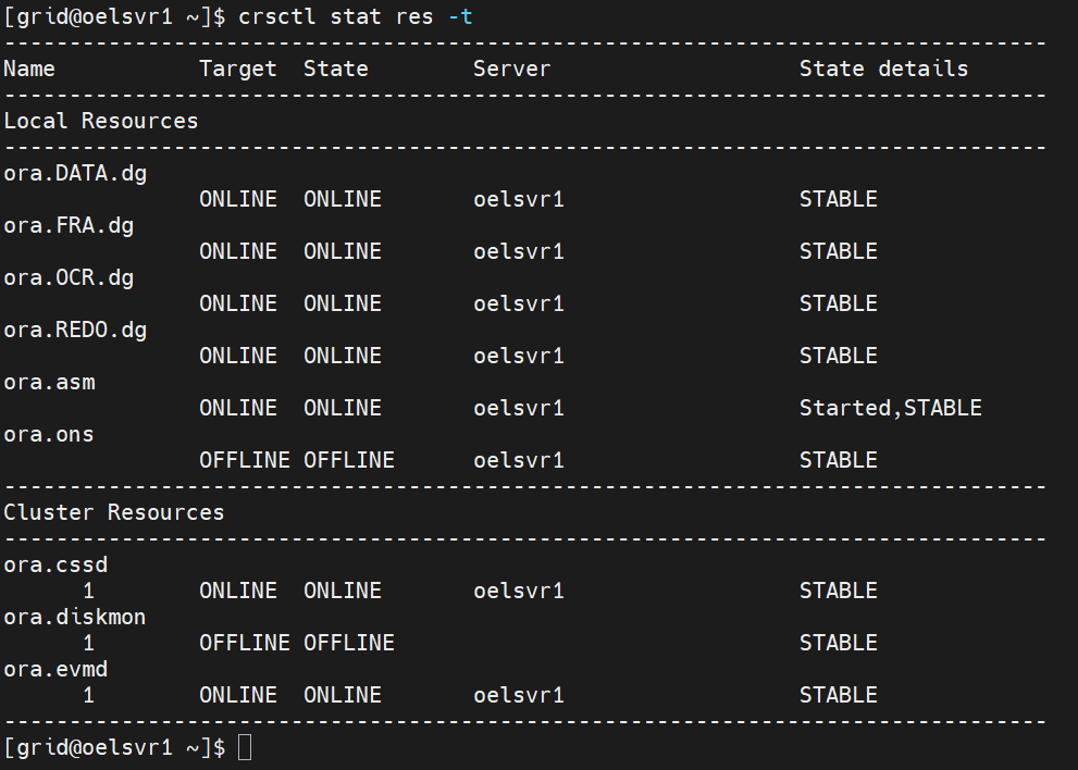 crsctl로도 확인 가능